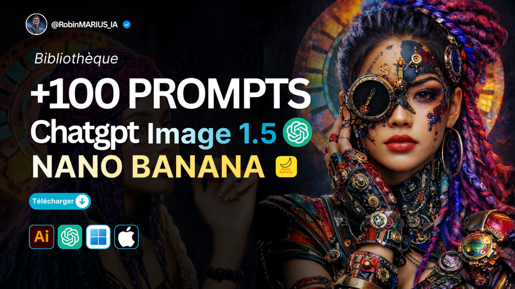 🔥 𝟭𝟬𝟬 𝗣𝗥𝗢𝗠𝗣𝗧𝗦 𝗽𝗼𝘂𝗿 𝗰𝗿𝗲́𝗲𝗿 𝗱𝗲𝘀 𝗶𝗺𝗮𝗴𝗲𝘀 𝘀𝗽𝗲𝗰𝘁𝗮𝗰𝘂𝗹𝗮𝗶𝗿𝗲𝘀 : La bibliothèque pour créer des visuels professionnels, cinématographiques et haut de gamme avec ChatGPT Image et Nano Banana Pro.